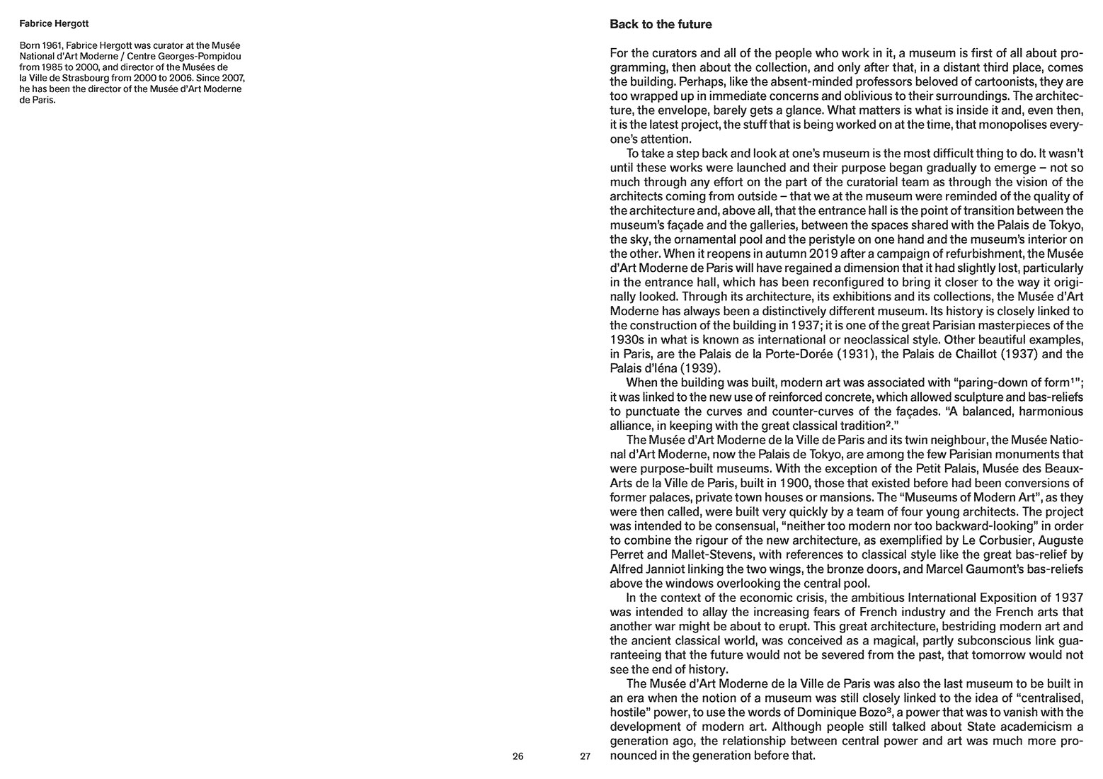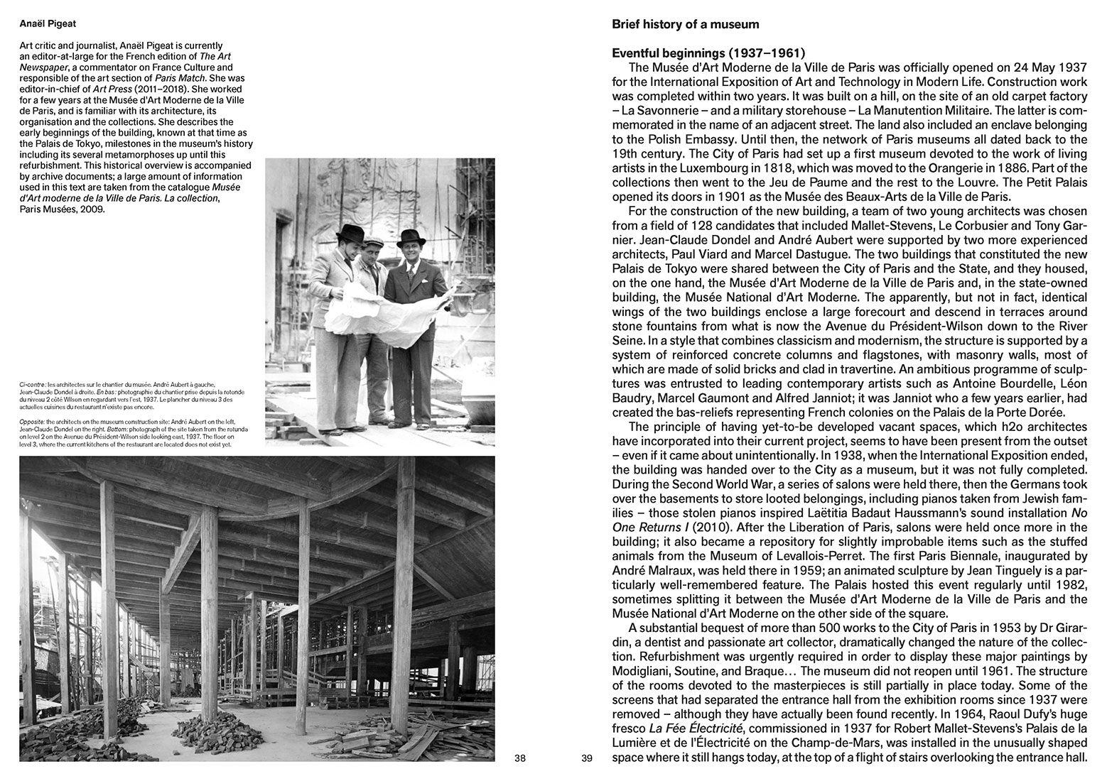 La publication sur la transformation du Musée d’Art Moderne de Paris est sortie. L’ouvrage est documenté par les photographes Stéphane Chalmeau et Myr Muratet. Il est introduit par Fabrice Hergott, directure du musée, et raconté par Anaël Pigeat, journaliste et critique d’art. L’artiste Laëtitia Badaut Haussmann a également donné sa vision de la temporalité du projet.