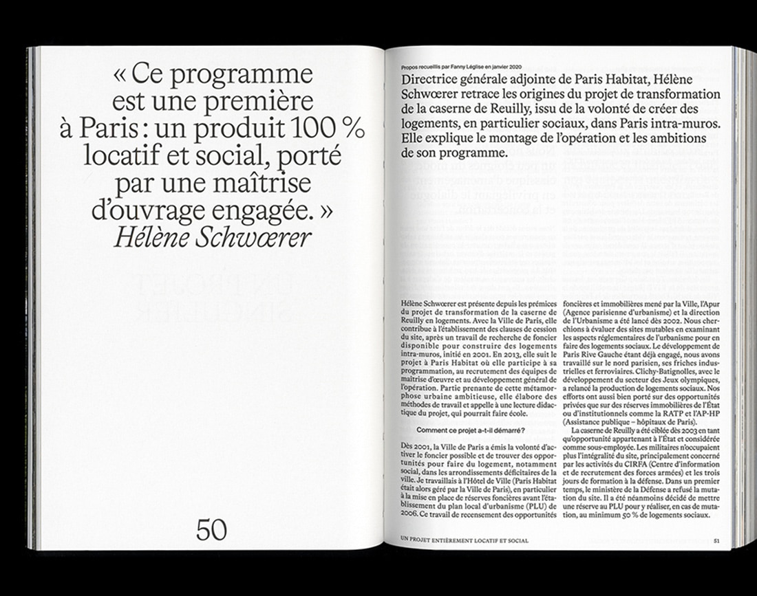 Cet ouvrage présente et partage ce concentré de savoir-faire qui allie mise en valeur du patrimoine, technicité, écologie, innovation et méthodes concertées. Avec les équipes de maîtrise d’œuvre et les riverains, Paris Habitat a élaboré un projet urbain ambitieux que cet ouvrage retrace en donnant la parole à ses principaux acteurs.