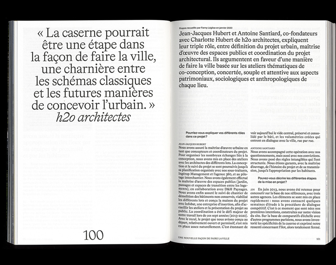 L’ouvrage rassemble vingt-neuf projets livrés ou en cours conçus par l’agence depuis une dizaine d’année, répartis selon des thématiques propres à son approche singulière, et éclairés par le regard de l’auteur Fanny Léglise, qui retrace plusieurs longs entretiens avec les trois associés. Des contributions de Miguel Mazeri (anthropologue), Bernard Tschumi (architecte), et Frédéric Forte, (poète) viennent enrichir la vision de l’agence.