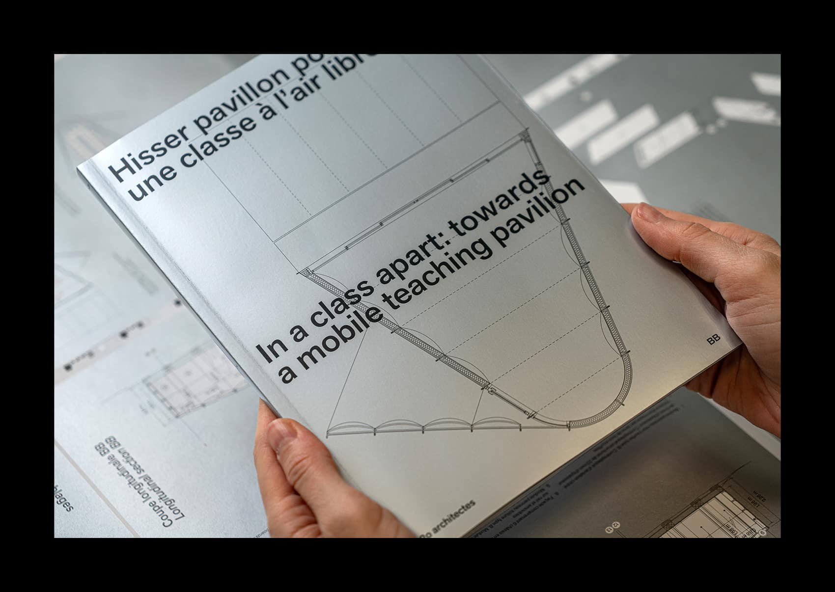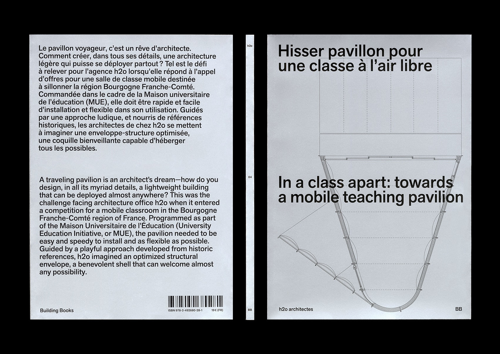Le pavillon voyageur, c’est un rêve d’architecte. Comment créer, dans tous ses détails, une architecture légère qui puisse se déployer partout ? Tel est le défi à relever pour l’agence h2o lorsqu’elle répond à l’appel d’offres pour une salle de classe mobile destinée à sillonner la région Bourgogne Franche-Comté. Commandée dans le cadre de la Maison universitaire de l’éducation (MUE), elle doit être rapide et facile d’installation et flexible dans son utilisation. Guidés par une approche ludique, et nourris de références historiques, les architectes de chez h2o se mettent à imaginer une enveloppe-structure optimisée, une coquille bienveillante capable d’héberger tous les possibles.