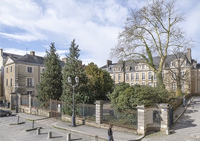 L’agence remporte le concours pour la transformation du Palais Saint-Mélaine à Rennes en programme mixte, logements et bureaux. Implanté et développé en lien avec l’abbaye Saint-Melaine, l’ancien palais de l’évêché est partie prenante de ce grand enclos religieux constitué en dehors de la ville dès l’époque médiévale et conforté aux XVIIe et XVIIIe siècles. Le Palais, classé Monuments Historiques depuis 1959 entre cour et jardin, a abrité de nombreuses fonctions successives, ancien archevêché en 1770, Museum d’Histoire Naturelle et des Arts en 1793, Faculté de Droits en 1911, Rectorat de l’Académie en 1965. Le projet est réalisé pour Renaissances et développé avec ANA Ingénierie, Equilibre Structure, KS Paysage, Agence ON.